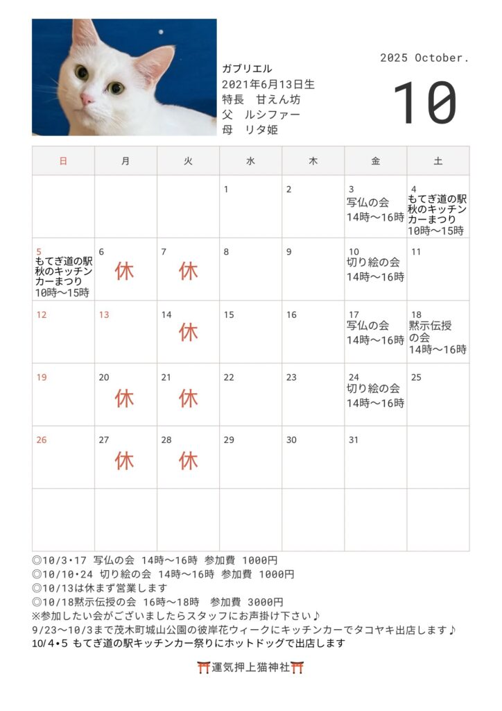 猫神様にご参拝頂けます。お店の混み具合でご案内出来ない場合はご了承下さい。