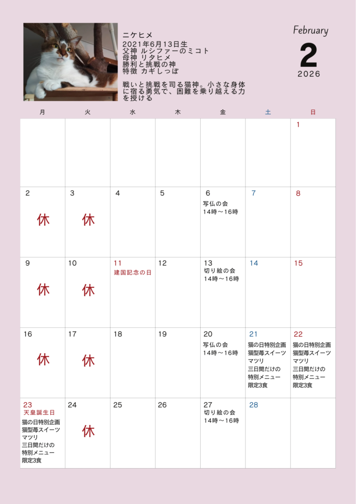 猫神様にご参拝頂けます。お店の混み具合でご案内出来ない場合はご了承下さい。
